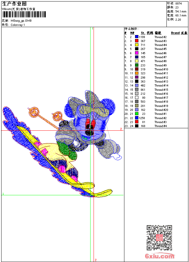 - emb花版参数: 大小:63.00 KB / 尺寸:60*54[毫米] / 针数:8974针 / 线色:23 / 格式:emb / 版本:9