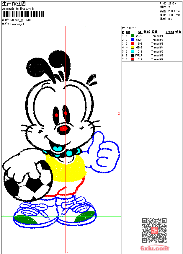 - emb花版参数: 大小:88.00 KB / 尺寸:189*286[毫米] / 针数:29339针 / 线色:7 / 格式:emb / 版本:9