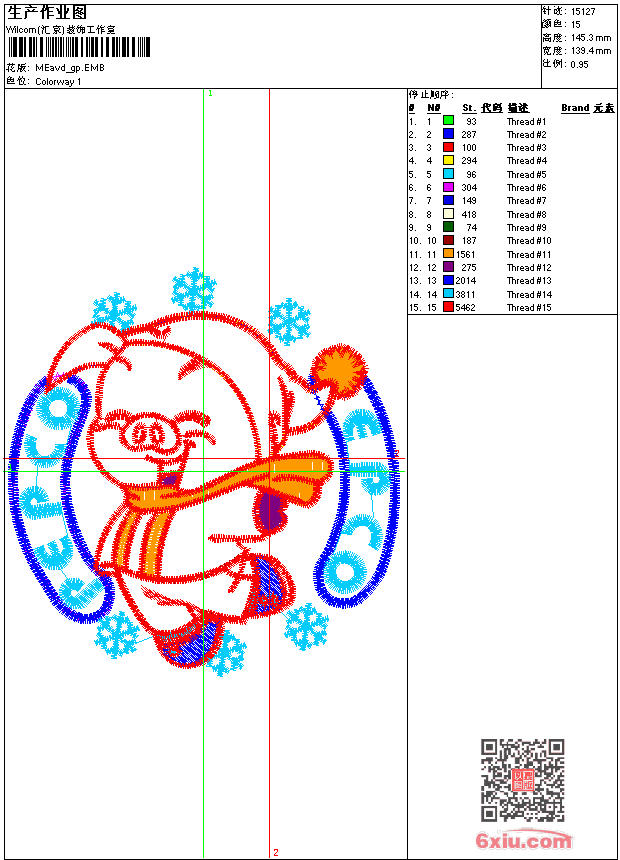 - emb花版参数: 大小:77.00 KB / 尺寸:139*145[毫米] / 针数:15127针 / 线色:15 / 格式:emb / 版本:9
