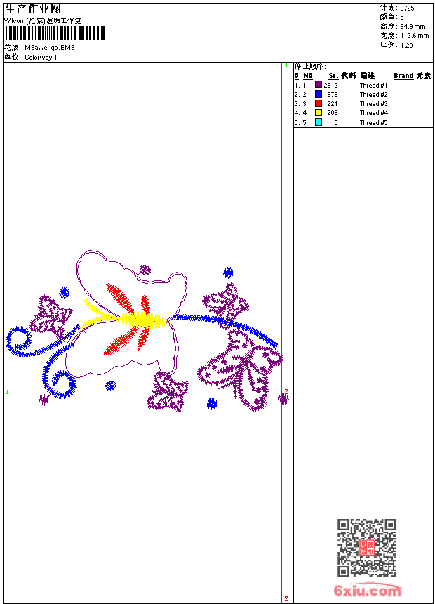 - emb花版参数: 大小:41.50 KB / 尺寸:114*65[毫米] / 针数:3725针 / 线色:5 / 格式:emb / 版本:9