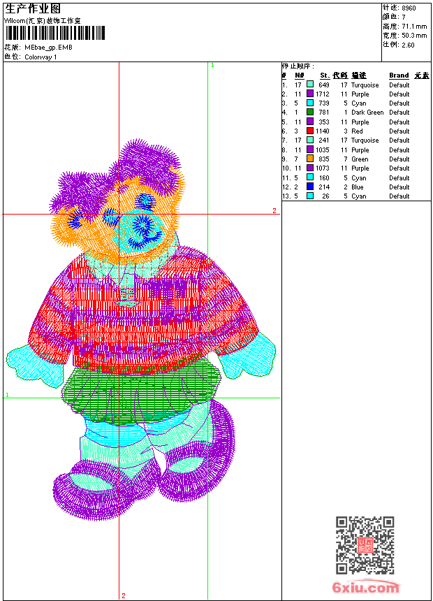 - emb花版参数: 大小:70.00 KB / 尺寸:50*71[毫米] / 针数:8960针 / 线色:7 / 格式:emb / 版本:9