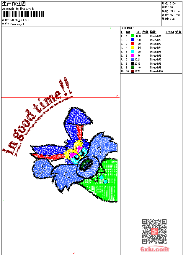 - 版带文件需绣花软件方可打开,可配色打印导出各种格式或直接上机绣。如无绣花软件可下载1:1模拟效果图。