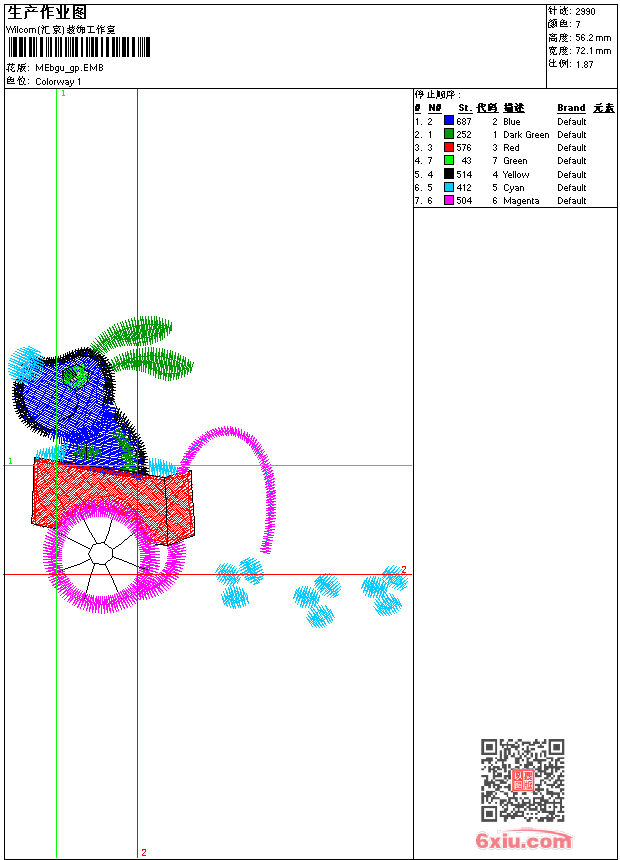 - 版带文件需绣花软件方可打开,可配色打印导出各种格式或直接上机绣。如无绣花软件可下载1:1模拟效果图。