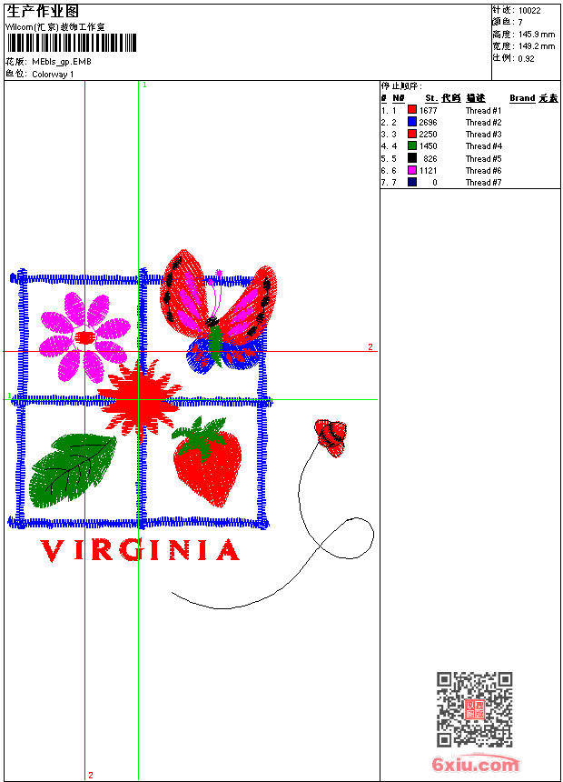 - emb花版参数: 大小:57.00 KB / 尺寸:149*146[毫米] / 针数:10022针 / 线色:7 / 格式:emb / 版本:9