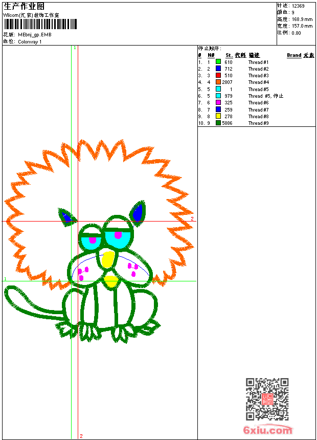 - emb花版参数: 大小:54.50 KB / 尺寸:157*169[毫米] / 针数:12369针 / 线色:9 / 格式:emb / 版本:9