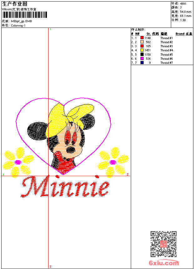 - emb花版参数: 大小:41.00 KB / 尺寸:69*55[毫米] / 针数:4991针 / 线色:7 / 格式:emb / 版本:9
