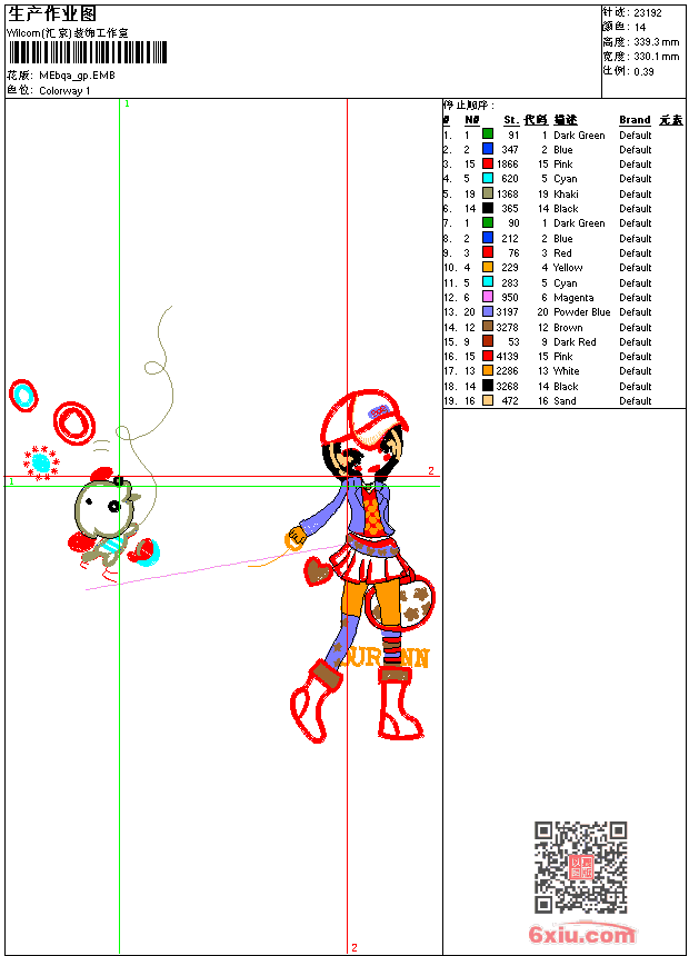 - emb花版参数: 大小:160.50 KB / 尺寸:330*339[毫米] / 针数:23192针 / 线色:14 / 格式:emb / 版本:9