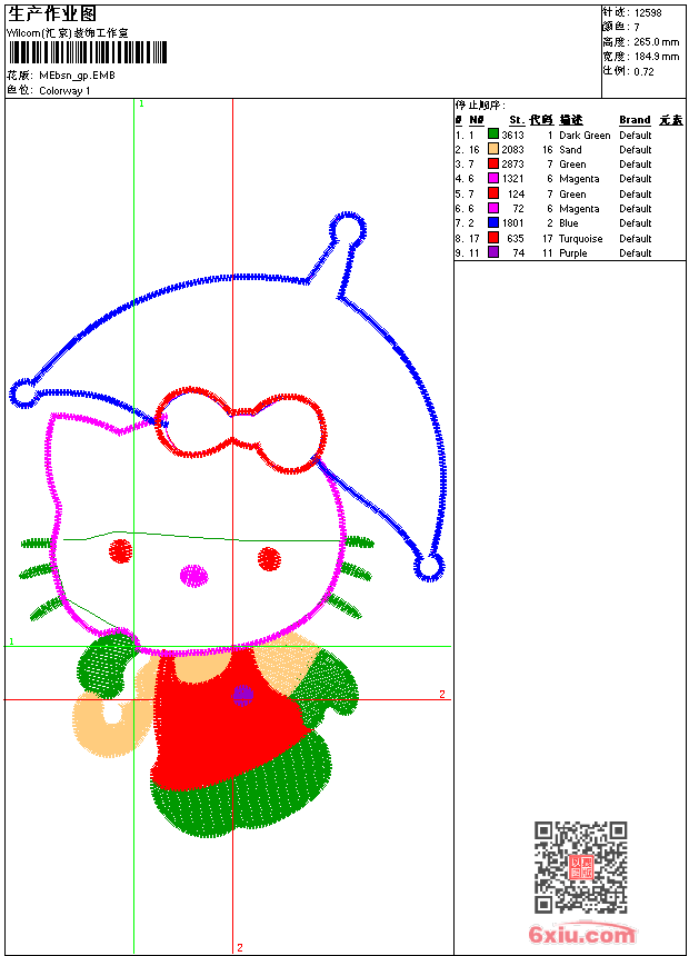 - 版带文件需绣花软件方可打开,可配色打印导出各种格式或直接上机绣。如无绣花软件可下载1:1模拟效果图。