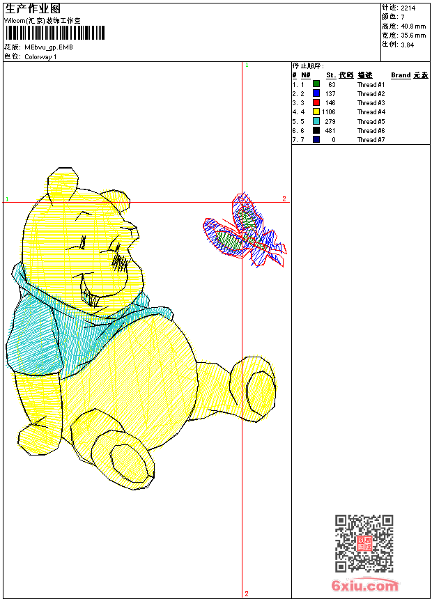 - emb花版参数: 大小:28.00 KB / 尺寸:36*41[毫米] / 针数:2214针 / 线色:7 / 格式:emb / 版本:9