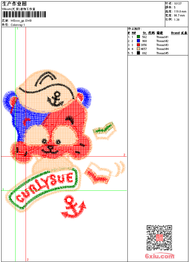 - 版带文件需绣花软件方可打开,可配色打印导出各种格式或直接上机绣。如无绣花软件可下载1:1模拟效果图。