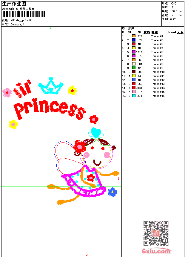 - emb花版参数: 大小:62.50 KB / 尺寸:171*186[毫米] / 针数:9580针 / 线色:16 / 格式:emb / 版本:9
