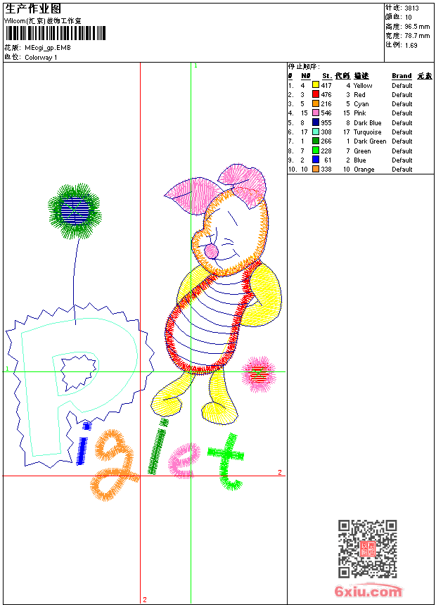 - 版带文件需绣花软件方可打开,可配色打印导出各种格式或直接上机绣。如无绣花软件可下载1:1模拟效果图。