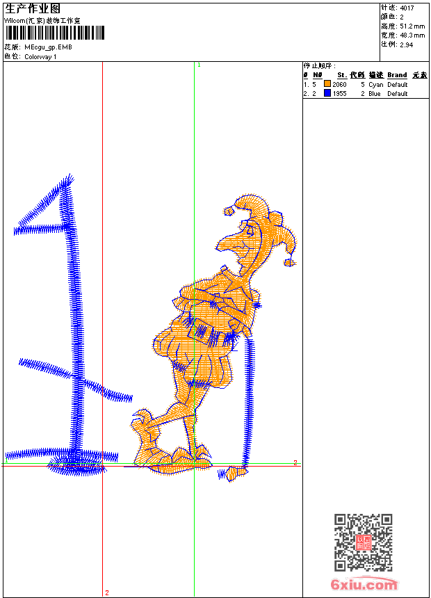 - emb花版参数: 大小:38.00 KB / 尺寸:48*51[毫米] / 针数:4017针 / 线色:2 / 格式:emb / 版本:9