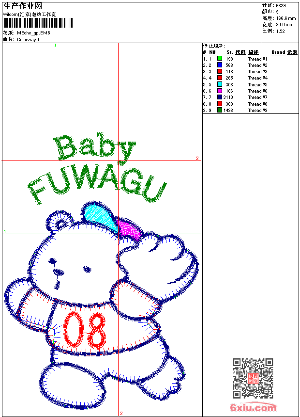 - emb花版参数: 大小:46.00 KB / 尺寸:90*167[毫米] / 针数:6629针 / 线色:9 / 格式:emb / 版本:9