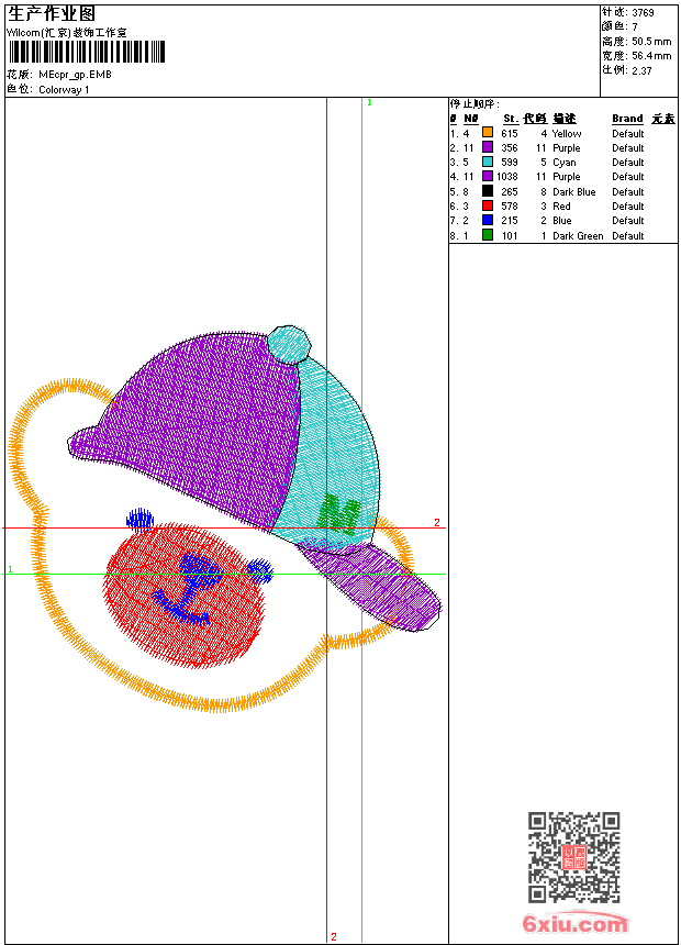 - emb花版参数: 大小:37.00 KB / 尺寸:56*50[毫米] / 针数:3769针 / 线色:7 / 格式:emb / 版本:9