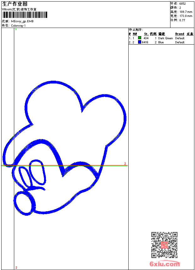 - emb花版参数: 大小:46.50 KB / 尺寸:174*190[毫米] / 针数:6852针 / 线色:2 / 格式:emb / 版本:9