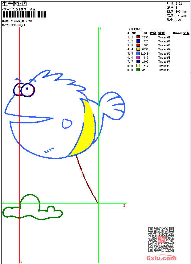 - emb花版参数: 大小:69.00 KB / 尺寸:494*607[毫米] / 针数:31321针 / 线色:9 / 格式:emb / 版本:9