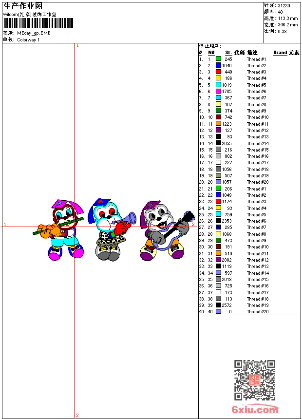 - emb花版参数: 大小:140.50 KB / 尺寸:346*113[毫米] / 针数:31230针 / 线色:40 / 格式:emb / 版本:9