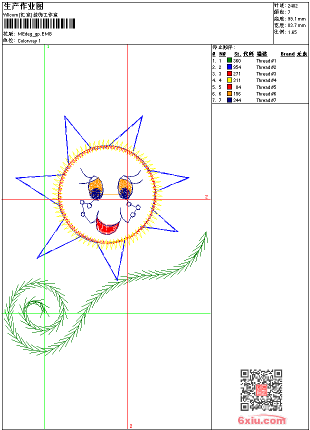 - emb花版参数: 大小:30.00 KB / 尺寸:84*99[毫米] / 针数:2482针 / 线色:7 / 格式:emb / 版本:9