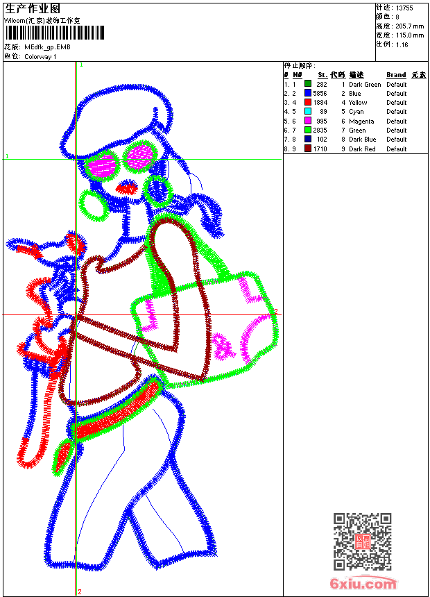 - 版带文件需绣花软件方可打开,可配色打印导出各种格式或直接上机绣。如无绣花软件可下载1:1模拟效果图。