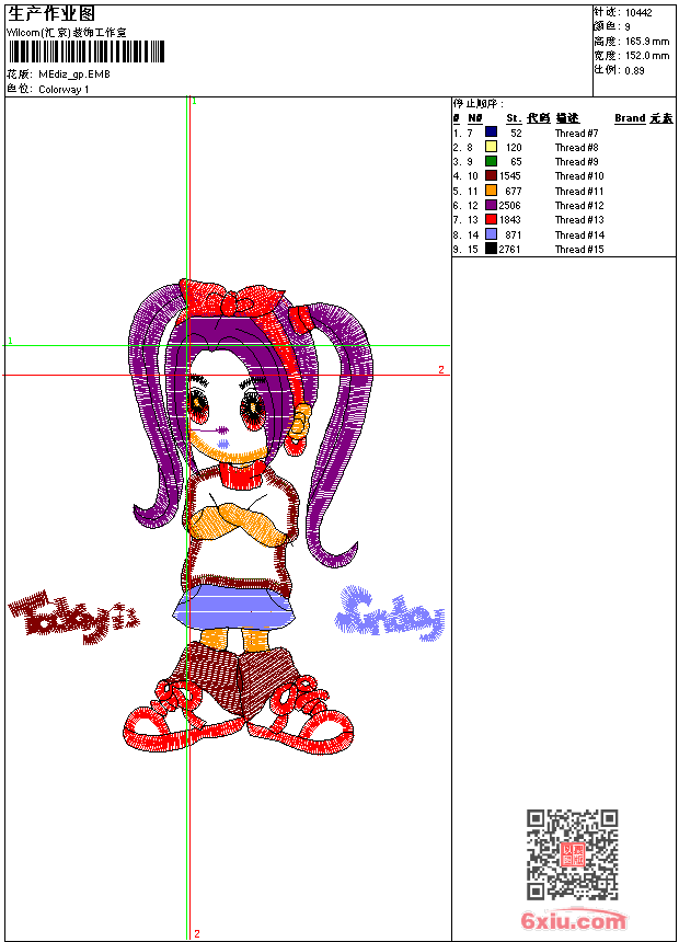 - emb花版参数: 大小:55.00 KB / 尺寸:152*166[毫米] / 针数:10442针 / 线色:9 / 格式:emb / 版本:9