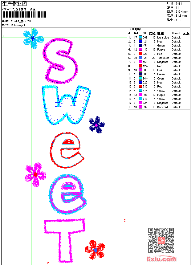 - 版带文件需绣花软件方可打开,可配色打印导出各种格式或直接上机绣。如无绣花软件可下载1:1模拟效果图。