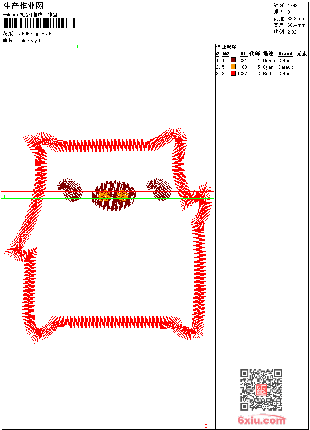 - emb花版参数: 大小:23.50 KB / 尺寸:60*63[毫米] / 针数:1798针 / 线色:3 / 格式:emb / 版本:9