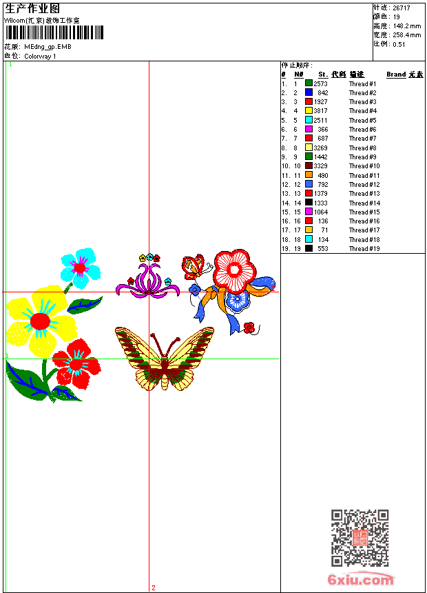 - emb花版参数: 大小:105.00 KB / 尺寸:258*148[毫米] / 针数:26717针 / 线色:19 / 格式:emb / 版本:9