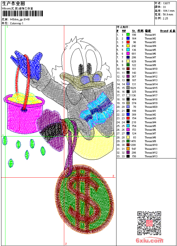 - 版带文件需绣花软件方可打开,可配色打印导出各种格式或直接上机绣。如无绣花软件可下载1:1模拟效果图。