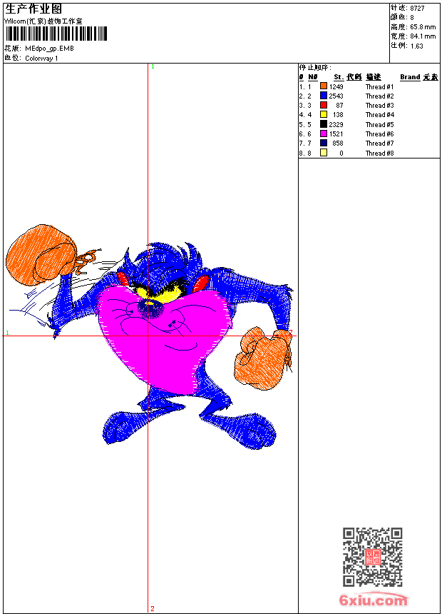 - 版带文件需绣花软件方可打开,可配色打印导出各种格式或直接上机绣。如无绣花软件可下载1:1模拟效果图。