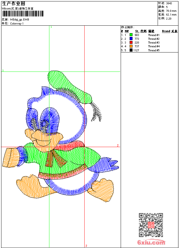- emb花版参数: 大小:31.50 KB / 尺寸:62*70[毫米] / 针数:3843针 / 线色:5 / 格式:emb / 版本:9