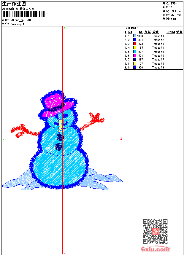 - emb花版参数: 大小:41.00 KB / 尺寸:76*63[毫米] / 针数:6538针 / 线色:9 / 格式:emb / 版本:9