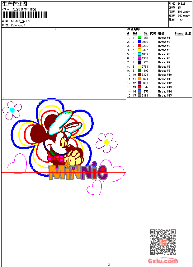- emb花版参数: 大小:133.50 KB / 尺寸:240*191[毫米] / 针数:36628针 / 线色:15 / 格式:emb / 版本:9
