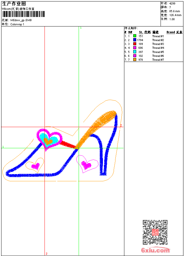 - 版带文件需绣花软件方可打开,可配色打印导出各种格式或直接上机绣。如无绣花软件可下载1:1模拟效果图。
