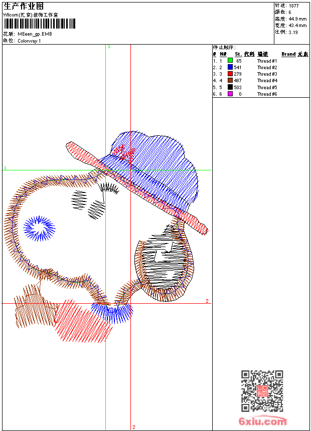 - emb花版参数: 大小:27.00 KB / 尺寸:43*45[毫米] / 针数:1877针 / 线色:6 / 格式:emb / 版本:9