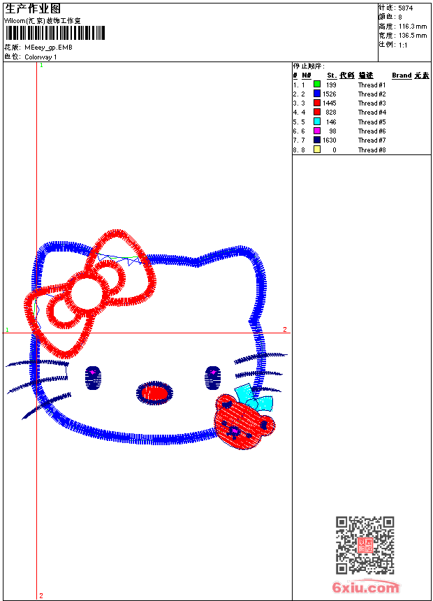 - emb花版参数: 大小:37.00 KB / 尺寸:137*116[毫米] / 针数:5874针 / 线色:8 / 格式:emb / 版本:9