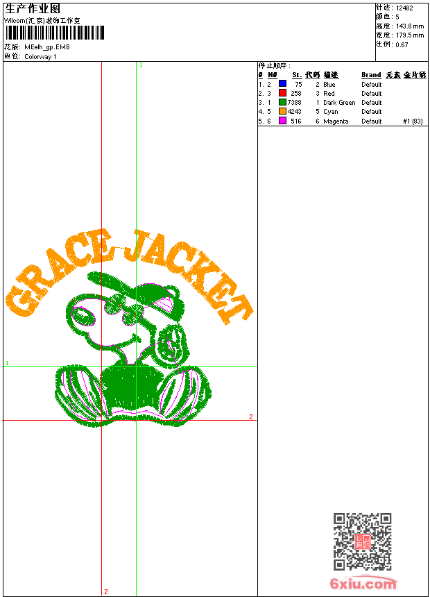 - emb花版参数: 大小:72.50 KB / 尺寸:179*144[毫米] / 针数:12482针 / 线色:5 / 格式:emb / 版本:9