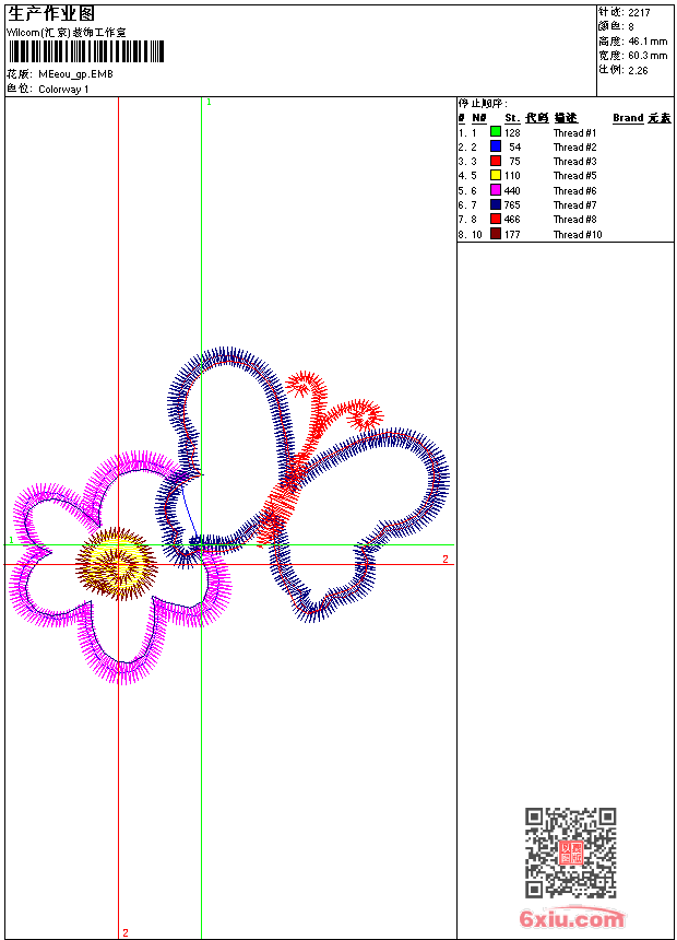 - emb花版参数: 大小:28.00 KB / 尺寸:60*46[毫米] / 针数:2217针 / 线色:8 / 格式:emb / 版本:9