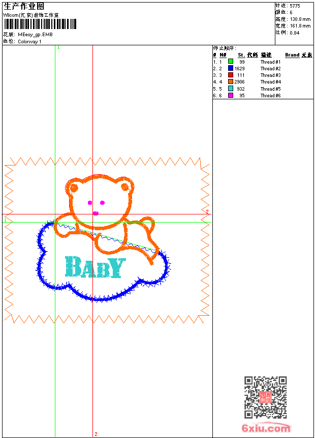 - emb花版参数: 大小:32.50 KB / 尺寸:162*131[毫米] / 针数:5775针 / 线色:6 / 格式:emb / 版本:9