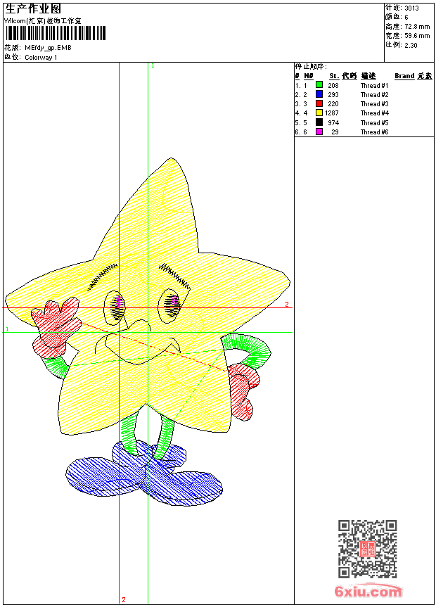 - emb花版参数: 大小:29.50 KB / 尺寸:60*73[毫米] / 针数:3013针 / 线色:6 / 格式:emb / 版本:9
