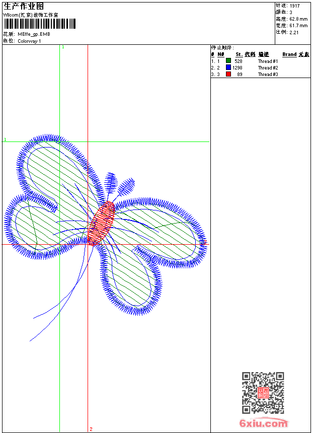 - emb花版参数: 大小:21.00 KB / 尺寸:62*63[毫米] / 针数:1917针 / 线色:3 / 格式:emb / 版本:9