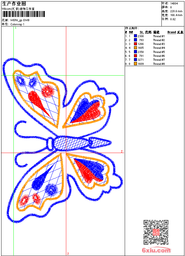 - emb花版参数: 大小:48.50 KB / 尺寸:166*229[毫米] / 针数:14004针 / 线色:8 / 格式:emb / 版本:9