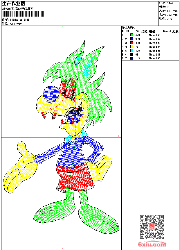 - emb花版参数: 大小:34.00 KB / 尺寸:36*60[毫米] / 针数:3746针 / 线色:7 / 格式:emb / 版本:9
