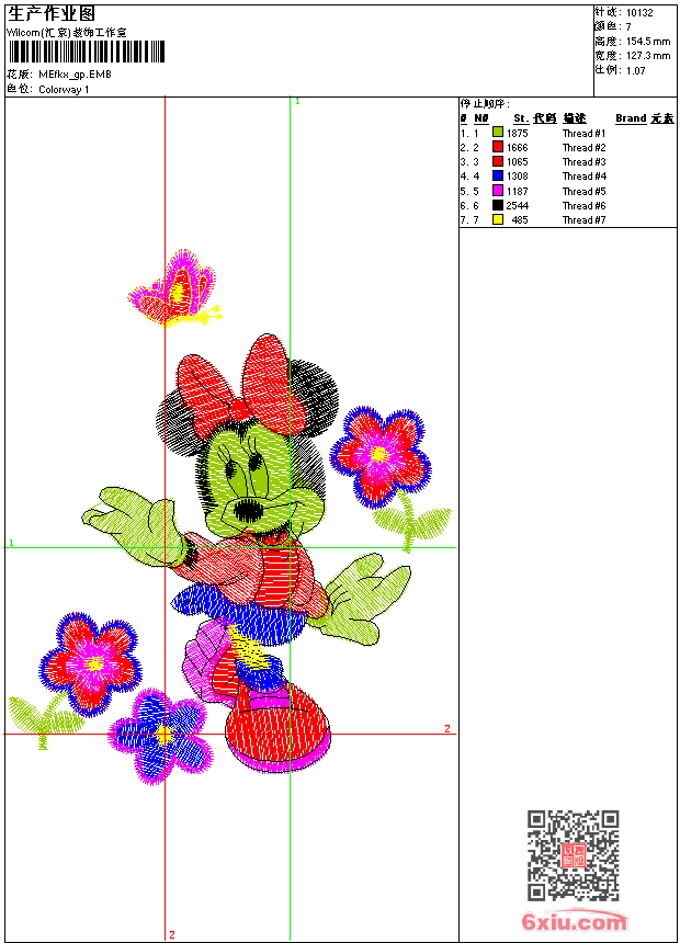 - emb花版参数: 大小:64.00 KB / 尺寸:127*154[毫米] / 针数:10132针 / 线色:7 / 格式:emb / 版本:9