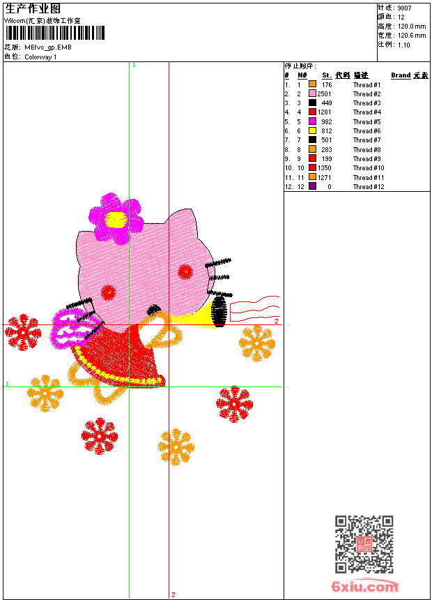 - emb花版参数: 大小:50.00 KB / 尺寸:121*120[毫米] / 针数:9807针 / 线色:12 / 格式:emb / 版本:9