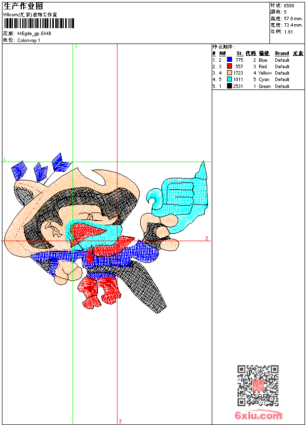 - 版带文件需绣花软件方可打开,可配色打印导出各种格式或直接上机绣。如无绣花软件可下载1:1模拟效果图。