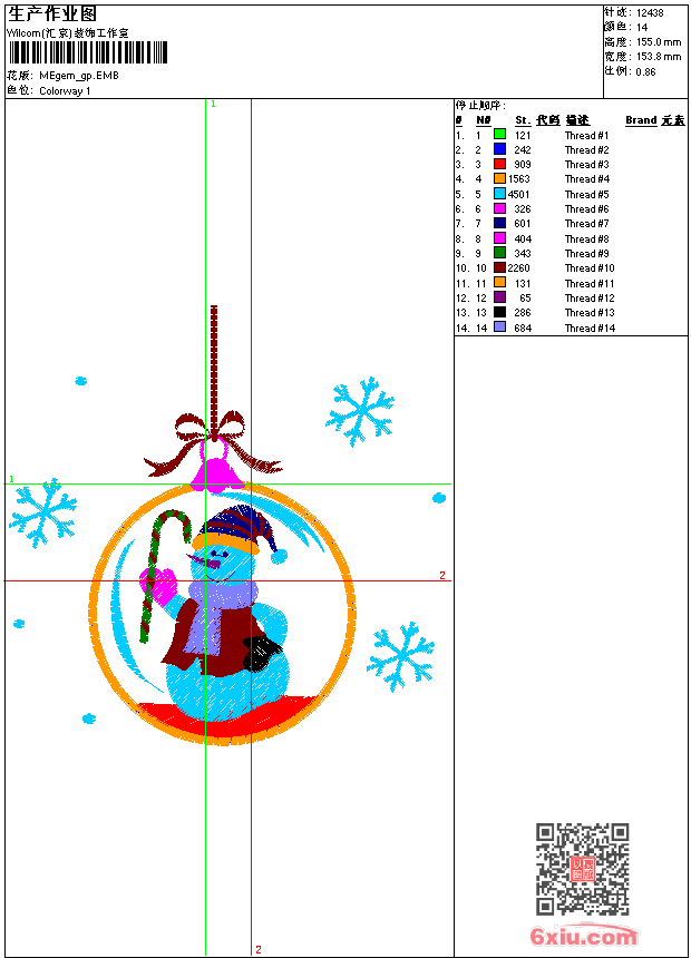 - emb花版参数: 大小:61.00 KB / 尺寸:154*155[毫米] / 针数:12438针 / 线色:14 / 格式:emb / 版本:9