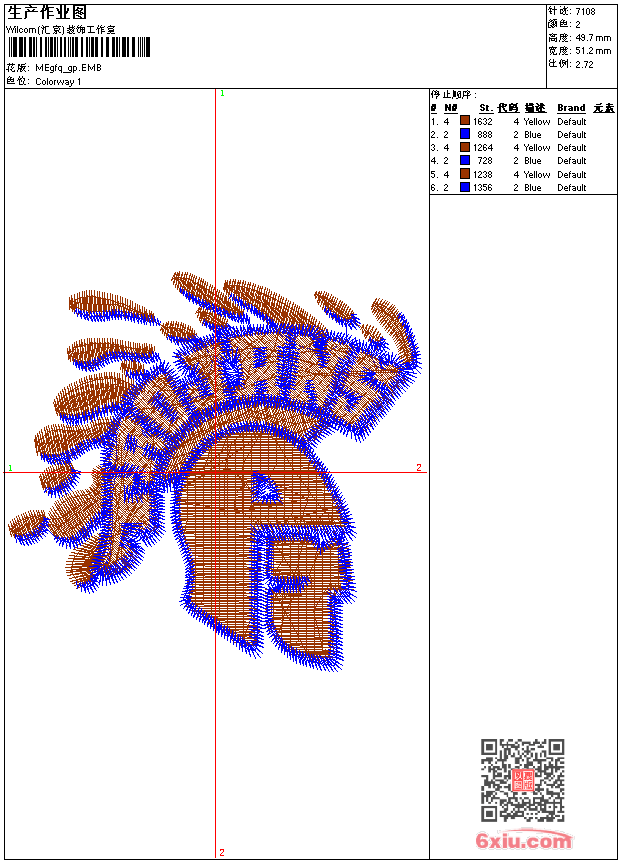 - emb花版参数: 大小:57.50 KB / 尺寸:51*50[毫米] / 针数:7107针 / 线色:2 / 格式:emb / 版本:9