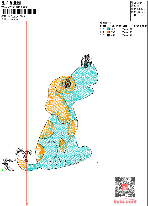 - 版带文件需绣花软件方可打开,可配色打印导出各种格式或直接上机绣。如无绣花软件可下载1:1模拟效果图。