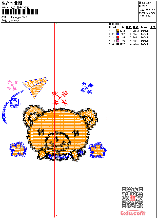 - 版带文件需绣花软件方可打开,可配色打印导出各种格式或直接上机绣。如无绣花软件可下载1:1模拟效果图。